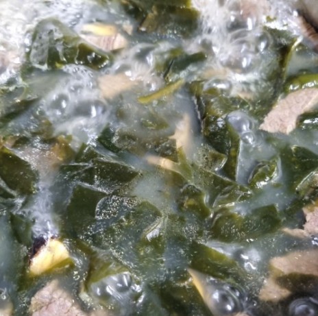 전통적인 미역국은 미역, 고기(주로 소고기), 간장, 마늘, 참기름 등으로 만들어집니다.