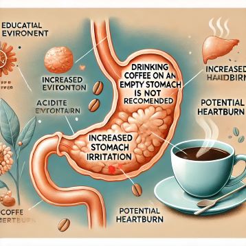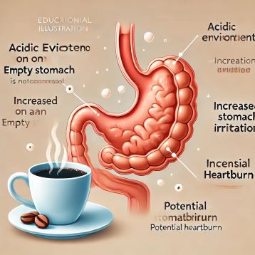카페인은 중추신경계를 자극하여 각성 효과를 주지만, 빈속에 섭취할 경우 부정적인 영향을 줄 수 있습니다.