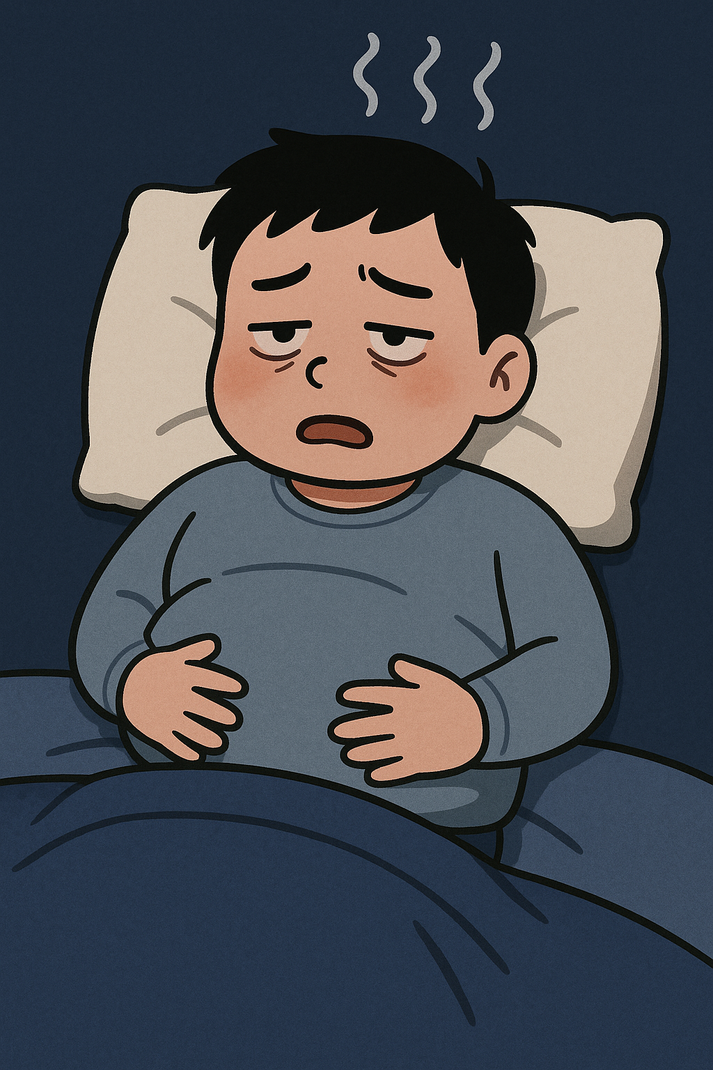 과식 후 눕게 되면 음식물이 위에 오래 머무르게 되고, 이로 인해 **위산 역류(GERD)**가 발생할 수 있습니다.